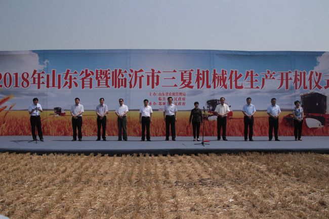 6月5日,2018年山东省暨临沂市三夏机械化生产开机仪式在我县举行。省农机局局长卜祥联,副局长韩永平,市政府副市长张玉兰,市政府副秘书长徐峰,市农机局局长刘洪军,县领导刘连栋、陈海玲、孙静波、李晓法等出席开机仪式。