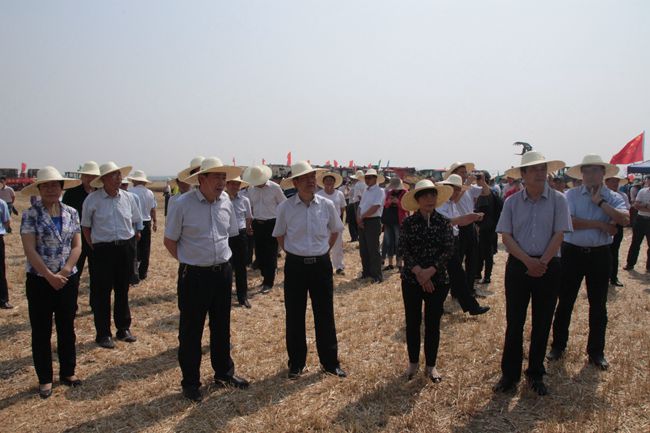 省农机局副局长韩永平宣布2018年山东省暨临沂市三夏机械化生产正式开机。与会人员现场观摩了小麦收割、秸秆还田、土地深松、机械打捆等机械化作业。